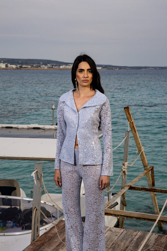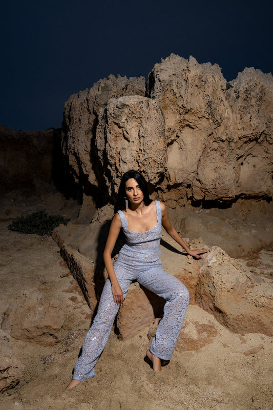 Infused with vibrant summer hues, radiant corals, serene aquatics, and gilded metallics, SIREN OF THE SHORE features luxurious fabrics such as sequins, lace, and metallic textures. Chosen to capture light and movement, creating pieces that command attention and exude an air of understated opulence. Each piece reflects the vibrant landscapes and serene allure of Cyprus, where the sea meets the shore.